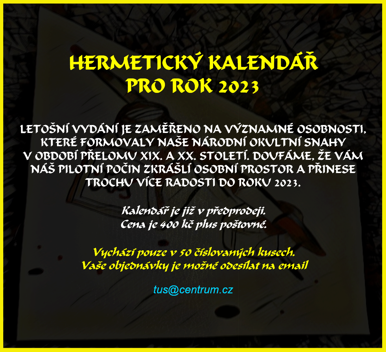 Ve spolupráci s Dokumentačním centrem českého hermetismu (DCČH) dalo vzniknout českému hermetickému kalendáriu, což je kalendář pro rok 2023, který si hodlá udržet svou existenci i v následujících letech. Tento nízkonákladový počin je uřčen všem nadšencům a historiografům, mapujícím dotyčný obor.